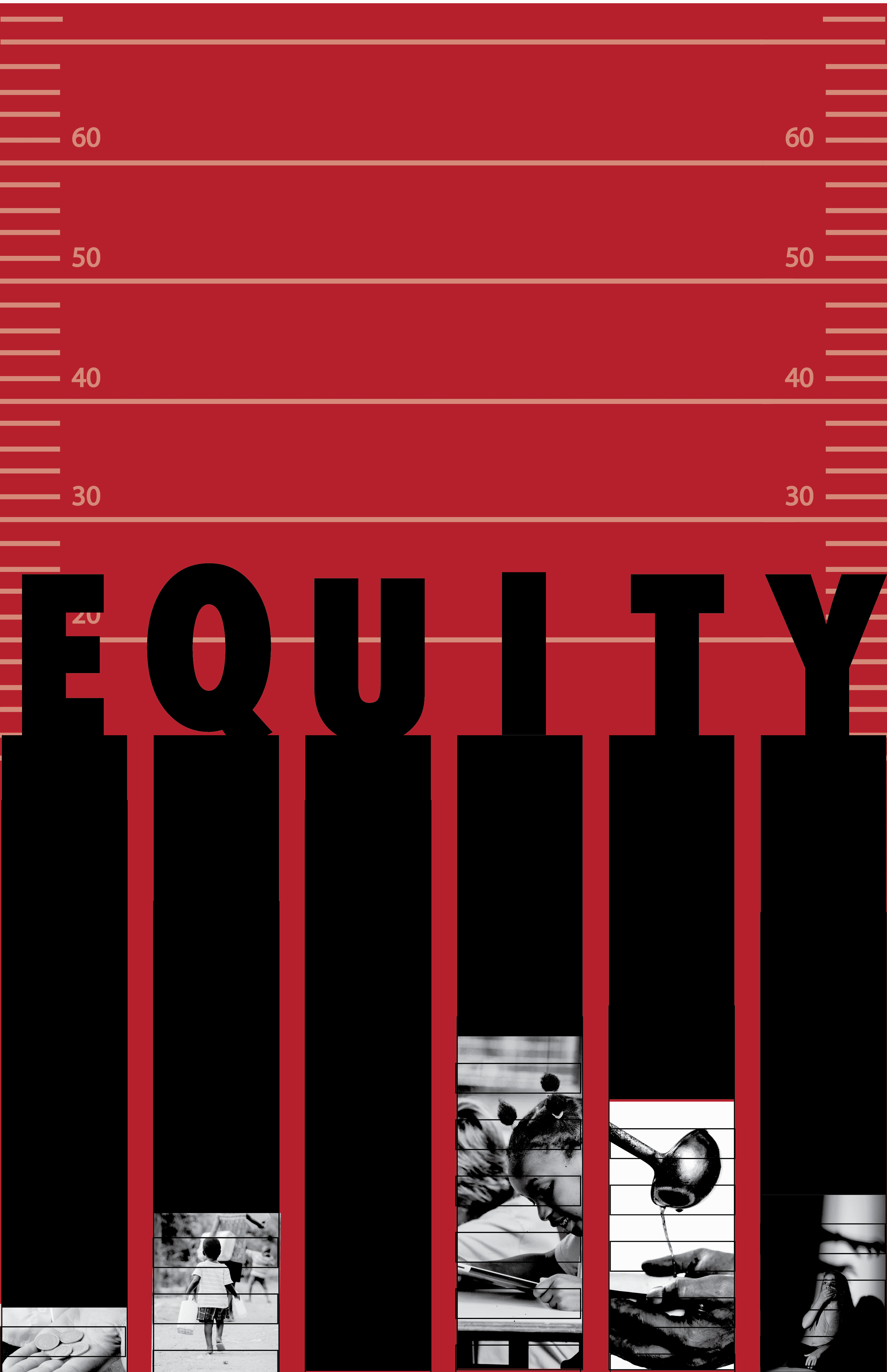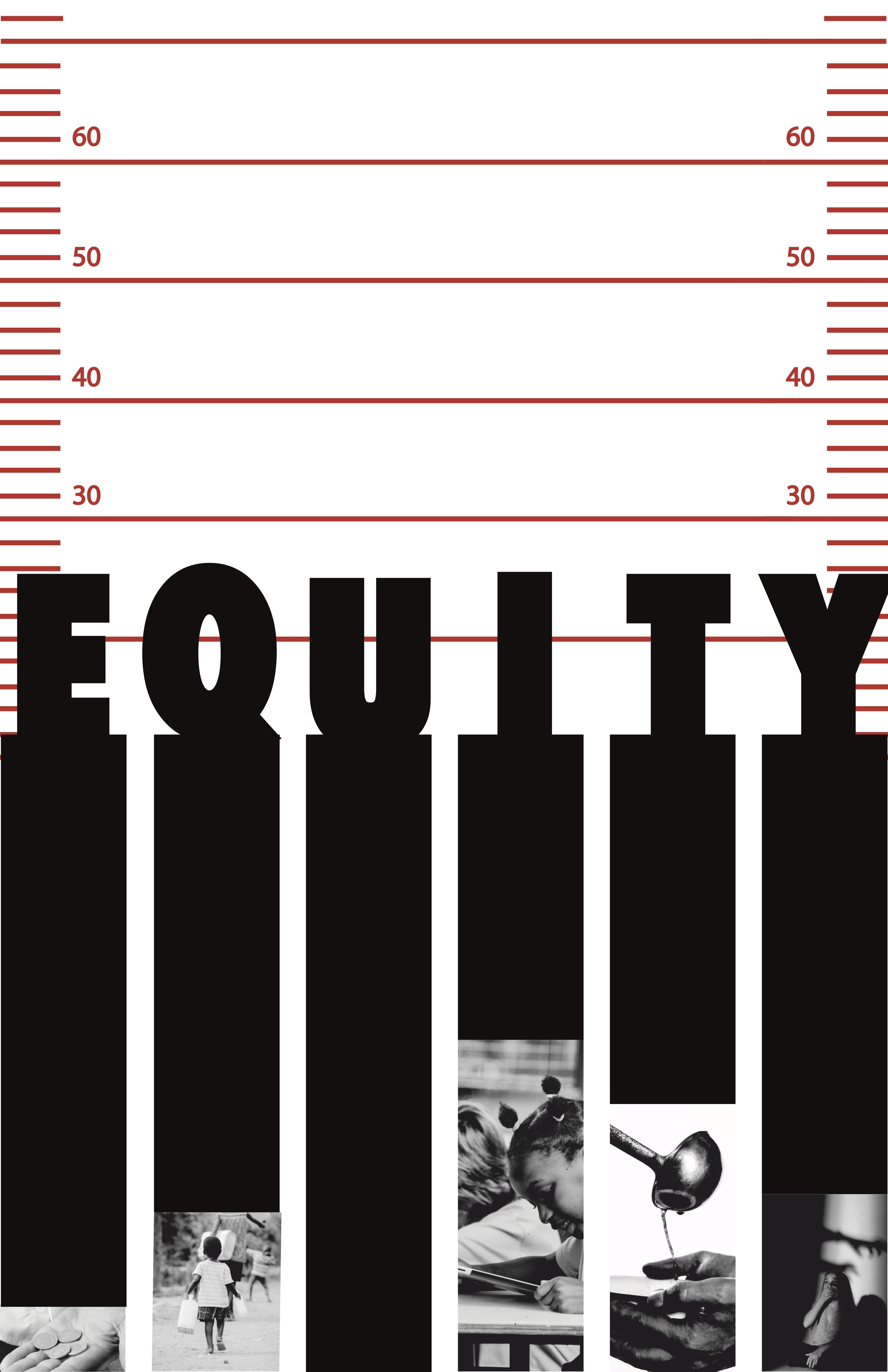 Used visual metaphors (e.g. rulers at the sides, uneven amounts needed to reach true equality, photos to represent the different types of underlying issues)